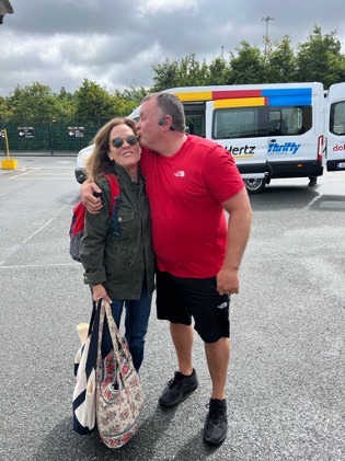 We arrive at Hertz to pick up our car to head toward Newgrange and the Mourne Mountains. Christy grabs our bags. I ask if I might take a picture. He pretends to plant a big kiss on Cathy, shakes my hand, tells me I’m a lucky man, and tells Sean, the parking lot attendant at Hertz, another Dubliner Christy knows,