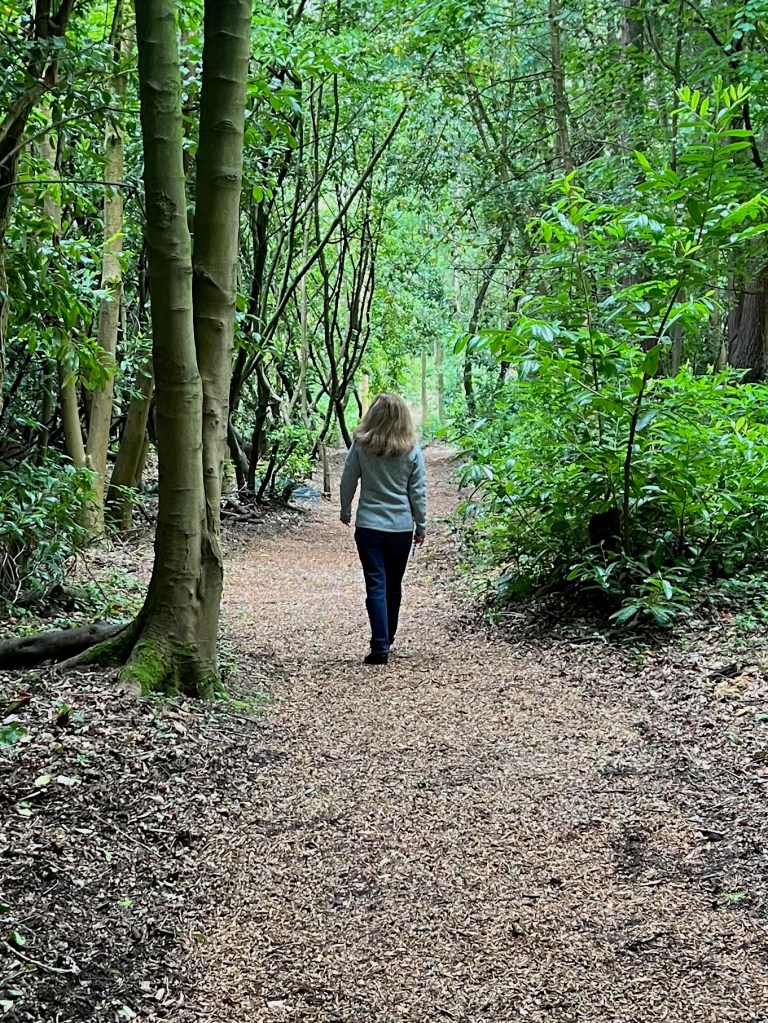 Cathy and I set out to stretch our legs. The path floor is made of wood mulch compressed over time and feels remarkably the same as the pedestrian conveyor walks in the airport in Dublin.