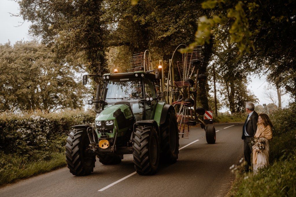Cathy is sitting in the back of the car wondering where I am when a strange man jumps into the front seat behind the wheel without looking back. He says, “hi” and tells Cathy “From the back I’m the spitting image of your husband to be.” Cathy, suspecting that it is Sean the farmer, replies “close, but not Rob.”