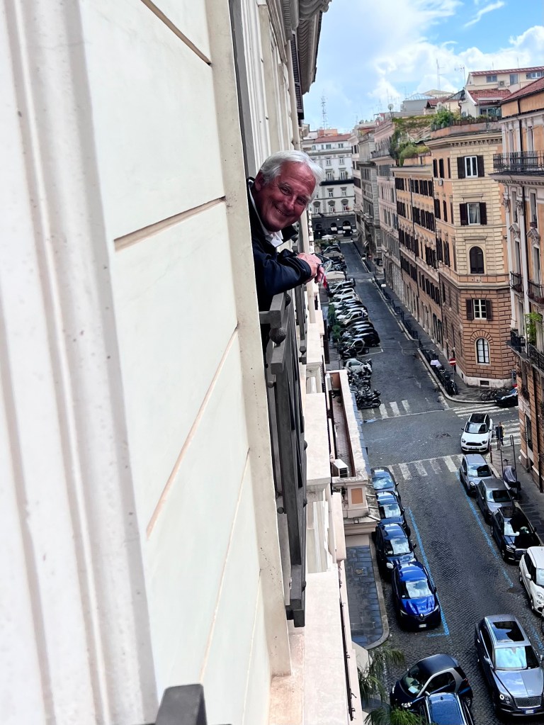 I’m pretty sure it was this undercover demeanor that prompted the enterprising man on the Spanish Steps to offer Cathy four roses and then turn to me for remuneration. We had bivouacked for the night half way up the steps, when he caught me wheezing and unable to waive Cathy off of his classic “create the obligation” move. Oh well. My legal negotiating skills proved too much for him and five euros later I was the one getting my picture taken with Audrey Hepburn kissing me.
