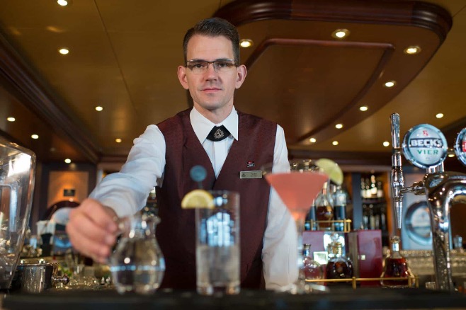 So, that led us to the Queen Elizabeth. Fewer people. Newly retrofitted. Art deco elegance. Old world charm. An on-board pub. A library. Whiskey sipping classes. High tea every afternoon. Croquet on the games deck.