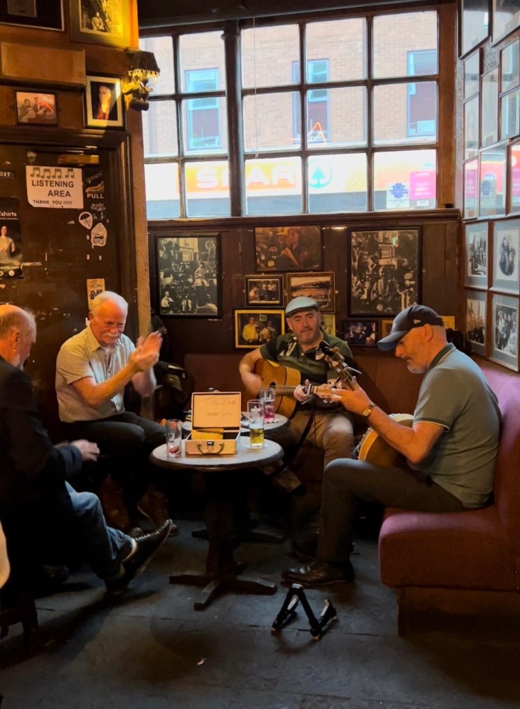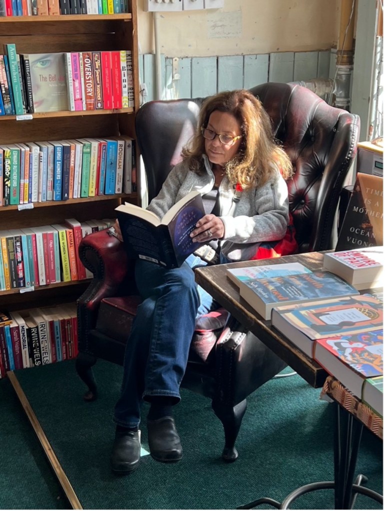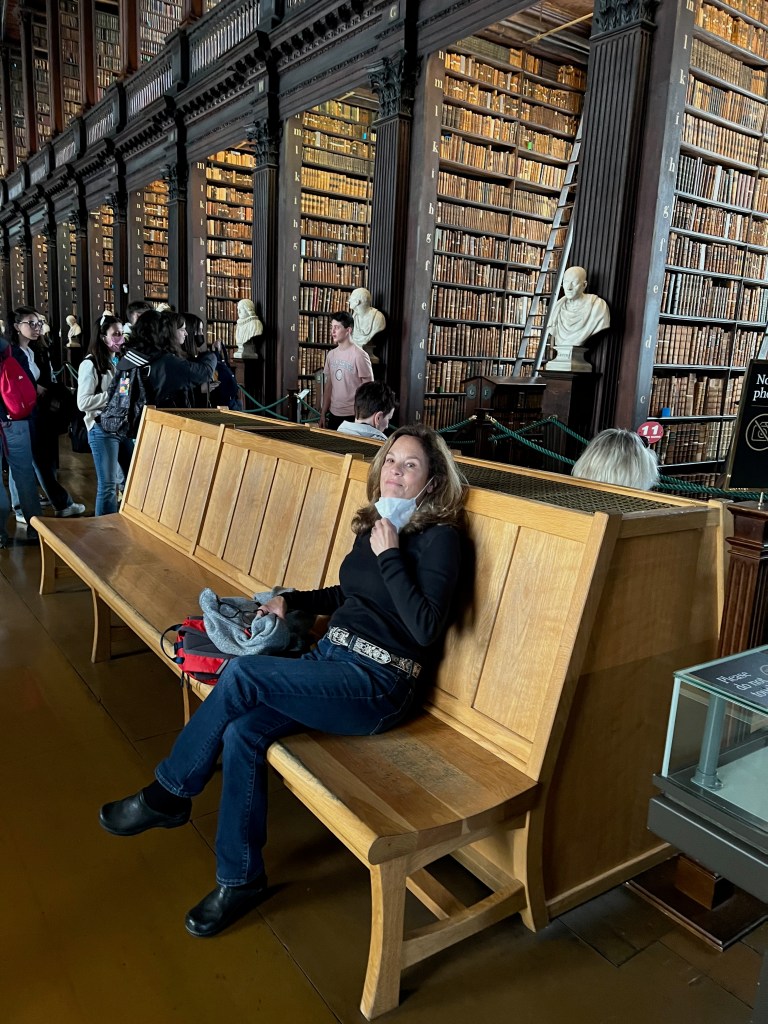 after we’ve shared salami and white Irish cheddar on surprisingly good French bread, and I’ve munched on too many shortbread cookies
